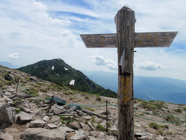 宝剣岳の山頂の北側と南側では、同じ岩場鎖場と言っても難易度が違います。北側は優しい岩場で、南側はとても厳しい岩場です。とくに山頂直下は要注意です。落ちたら100m以上は落ちてしまう様なところで、両側が切れています。